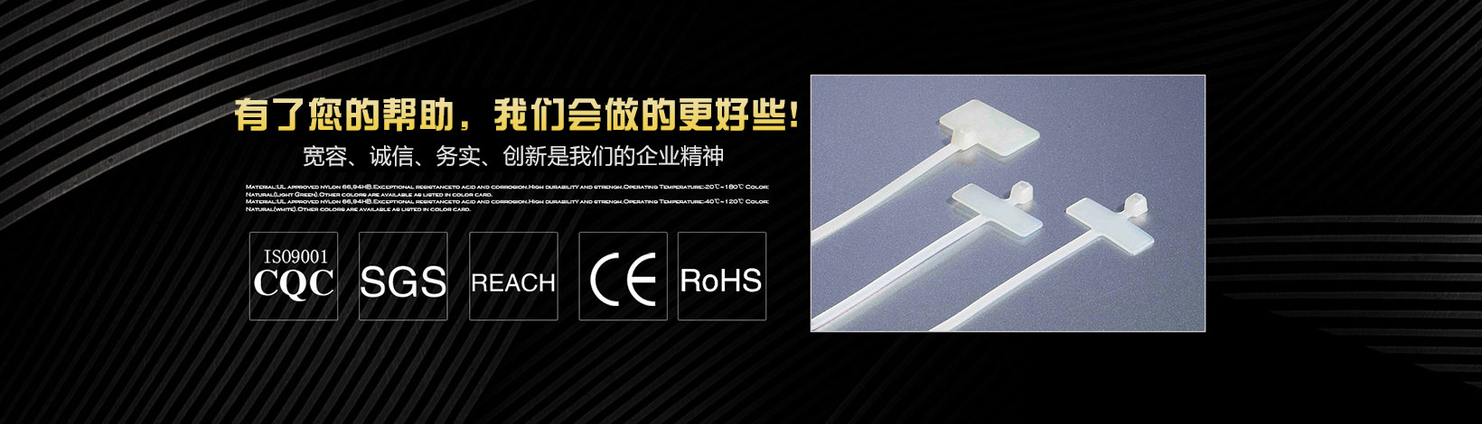 本公司專業(yè)生產(chǎn)銷售尼龍扎帶、特殊型扎帶、吸盤(自粘式定位片)、塑料膨脹管、尼龍壓線帽、電纜防水接頭、鋼釘線卡、R型線夾、飛機(jī)型線夾、瓷磚定位十字架、固定座、纏繞管、異型管、齒型管、號碼管、熱縮管、黃臘管、扎絲、鋼管蓋等系列產(chǎn)品。 我們擁有先進(jìn)的檢測設(shè)備和雄厚的技術(shù)力量,并不斷優(yōu)化生產(chǎn)流程,規(guī)范生產(chǎn)環(huán)節(jié),加強(qiáng)完善質(zhì)量控制系統(tǒng),以優(yōu)異的品質(zhì)深得海內(nèi)外客戶的一致好評。